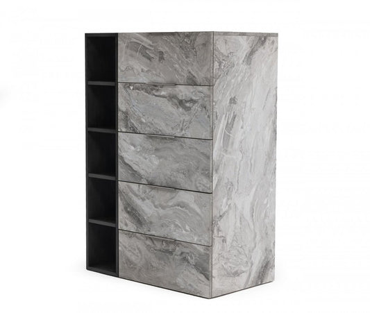 30" Walnut And Grey Manufactured Wood Five Drawer Chest