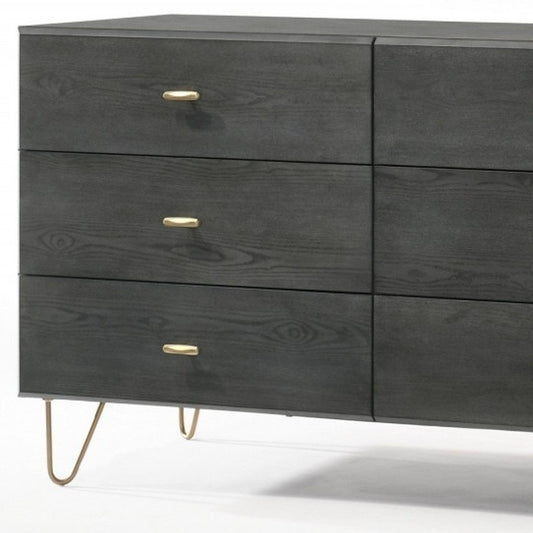 59" Grey Ash Manufactured Wood Six Drawer Double Dresser