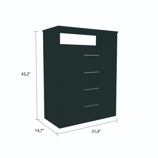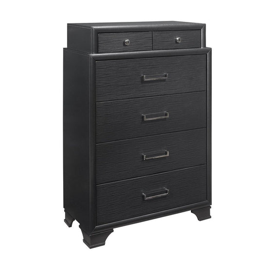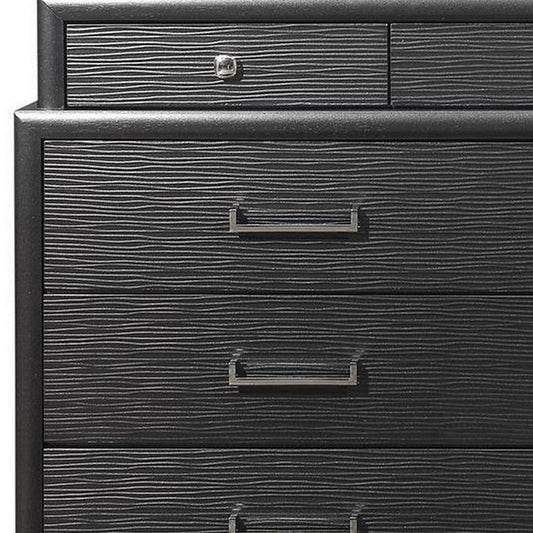 59" Black Solid Wood Mirrored Five Drawer Dresser