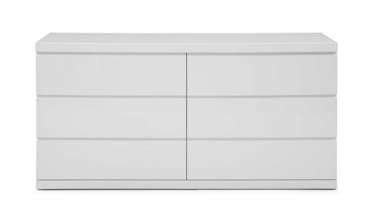Modern White Dresser With 7 Faux Marble Detailed Front Drawer.