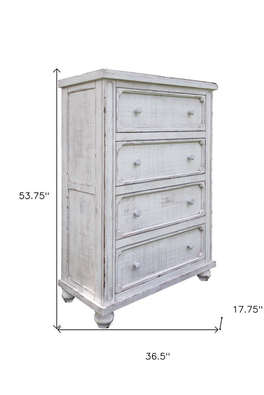 54" Brown And White Solid Wood Four Drawer Combo Dresser
