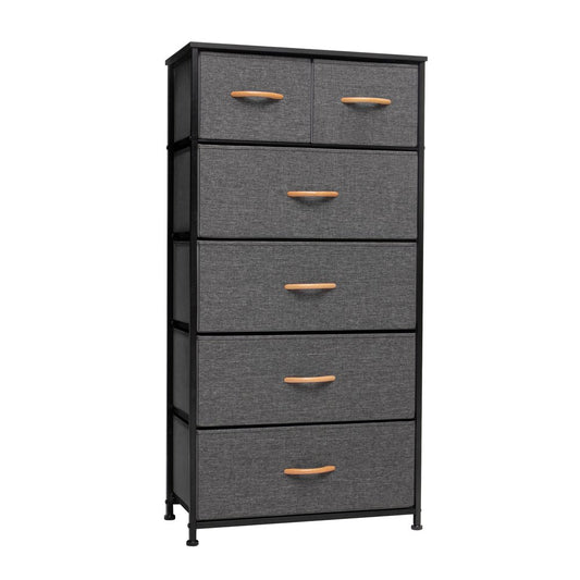 23" Gray and Black Steel and Fabric Six Drawer Chest