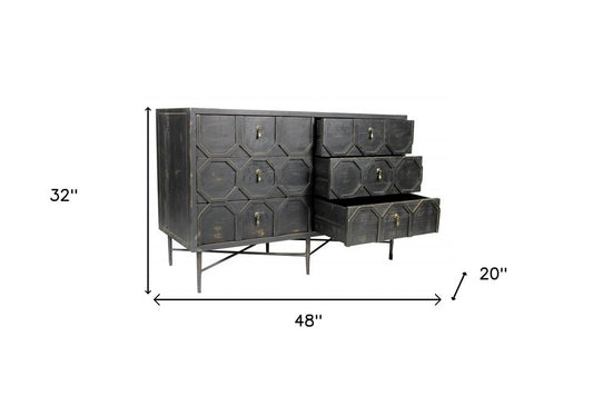 60" Black Solid and Manufactured Wood Six Drawer Double Dresser