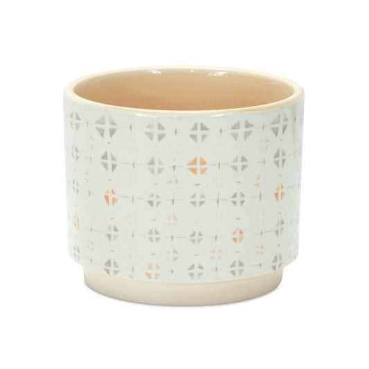 Set of Two White And Blue Ceramic 5 Ounce Geometric Round Pot Planters