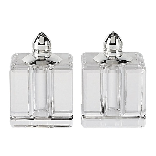 Set of Two Clear And Silver Crystal Geometric Pepper Shakers