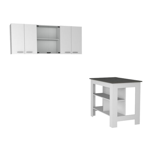 White and Gray 41" Kitchen Island With Storage