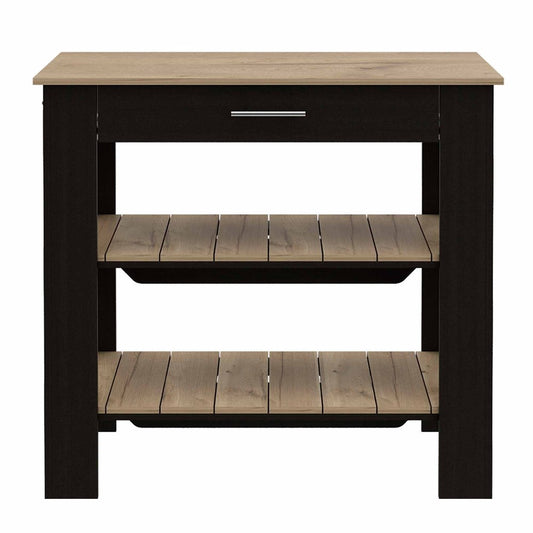Black and Oak 41" Kitchen Island With Storage