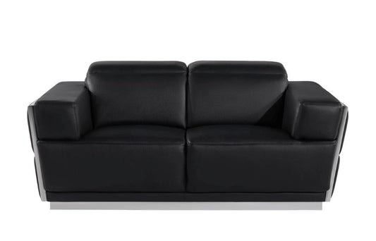 71" Black And Silver Genuine Leather Loveseat