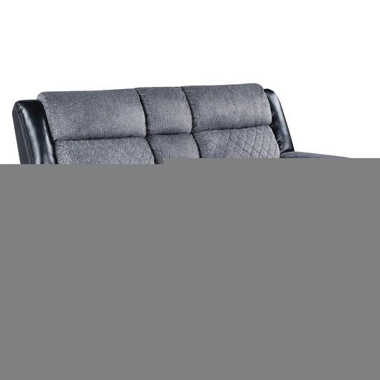 76" Gray and Black Faux Leather and Microfiber Manual Reclining Loveseat With Storage