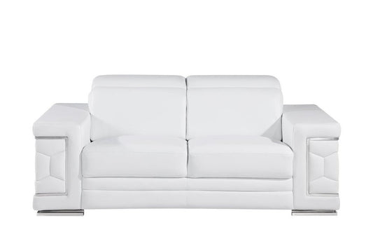 70" White And Silver Italian Leather Loveseat