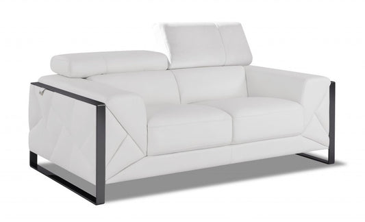75" White And Black Italian Leather Loveseat