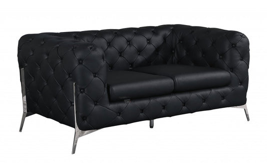 69" Black And Silver Italian Leather Loveseat