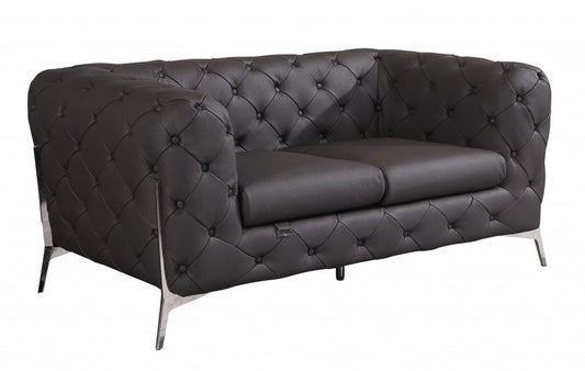 71" Chocolate And Silver Top Grain Leather Loveseat