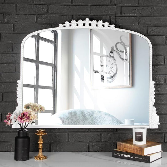 47" Antiqued White Solid Wood Carved Scrollwork Accent Mirror