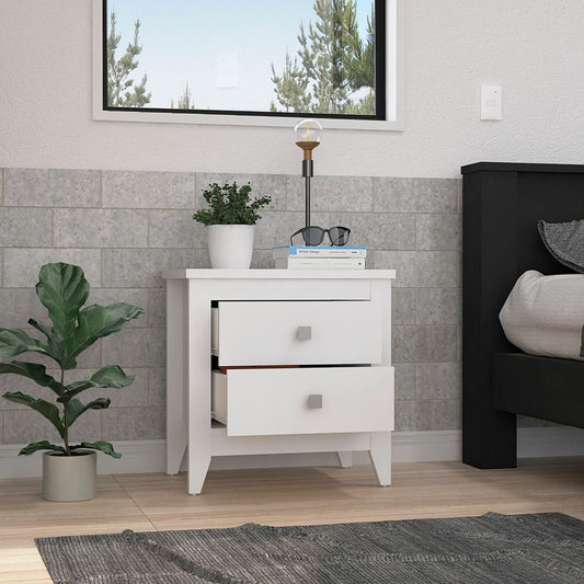 24" White Two Drawer Faux Wood Nightstand
