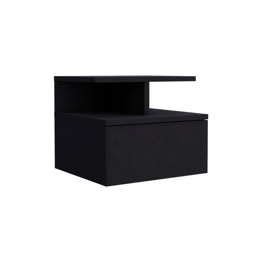 16" Black Wood One Drawer Floating Nightstand