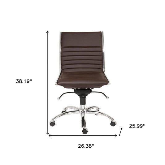 Brown and Silver Adjustable Swivel Faux Leather Rolling Conference Office Chair