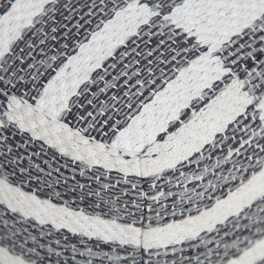 18" Gray Cotton Striped Pouf Ottoman