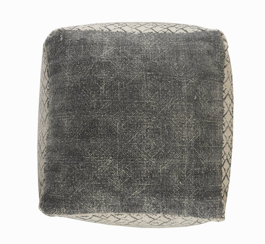 18" Gray Cotton Geometric Pouf Ottoman