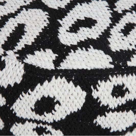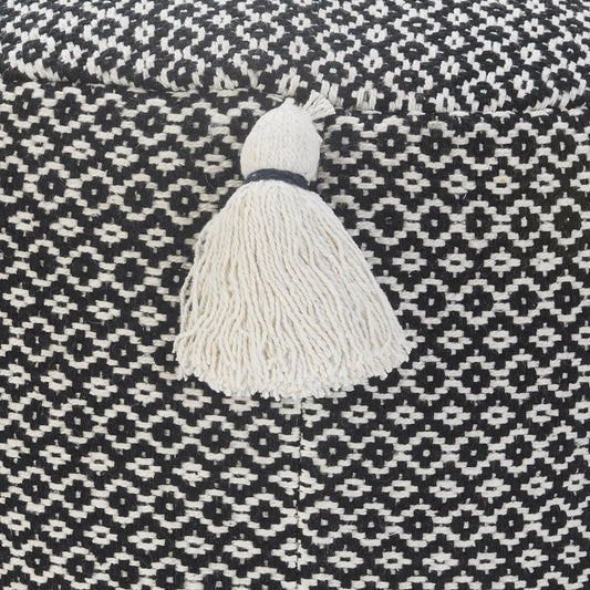 18" Black Cotton Cylinder Geometric Pouf Ottoman