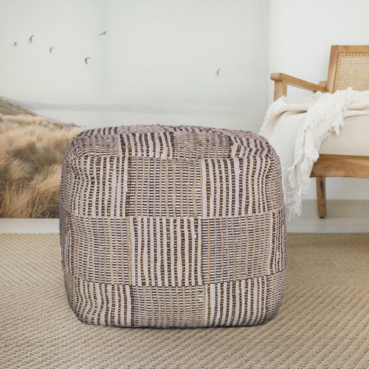 18" Brown Cotton Cube Geometric Pouf Ottoman
