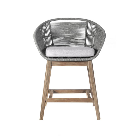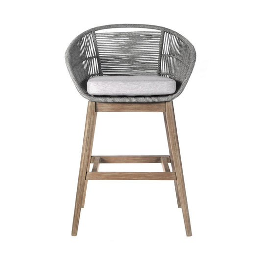 38" Light Gray Solid Wood Low back Outdoor Bar Height chair with Footrest