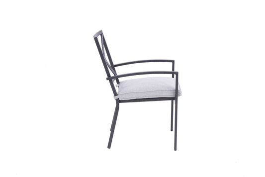 Set of Two Dark Gray Aluminum Outdoor Stacking Dining Chairs with Light Gray Cushion