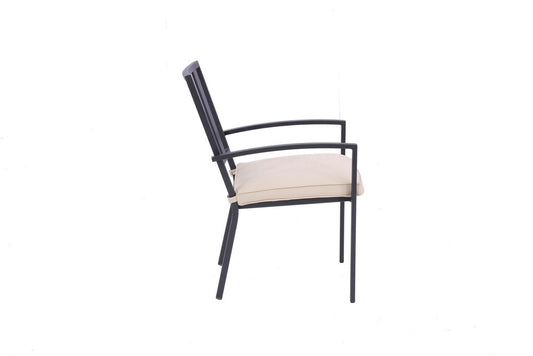Set of Two Dark Gray Aluminum Outdoor Stacking Dining Chairs with Beige Cushion