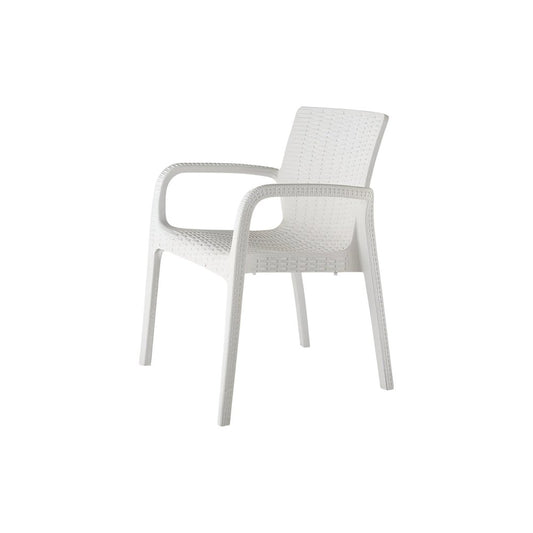 Set of Two White Faux Rattan Heavy Duty Plastic Outdoor Stacking Arm Chairs