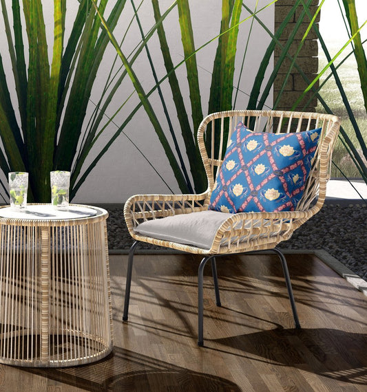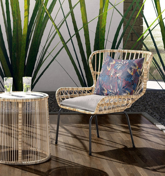 16” Indigo Red Tropical Indoor Outdoor Throw Pillow