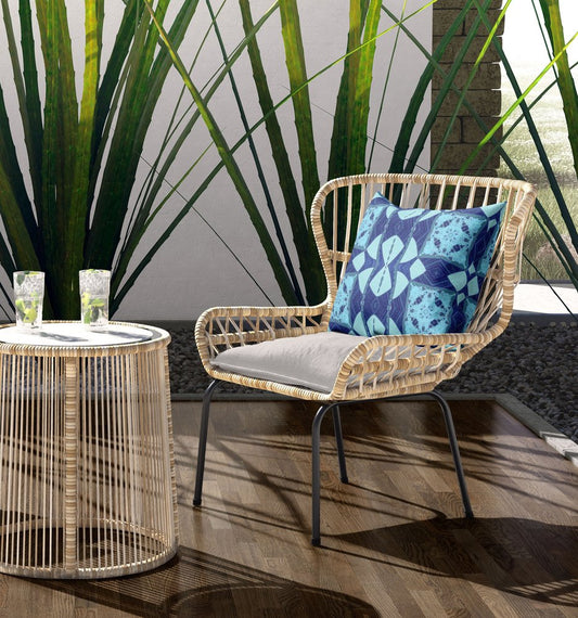 16" X 16" Blue Blown Seam Geometric Indoor Outdoor Throw Pillow