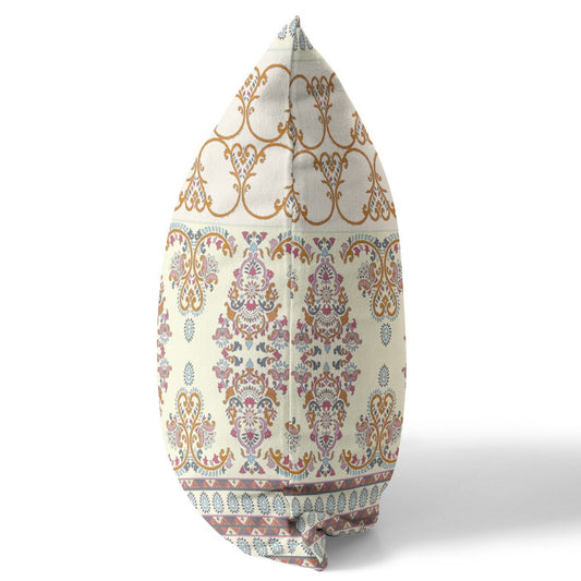 5" X 20" Pink and Green Paisley Indoor Outdoor Throw Pillow