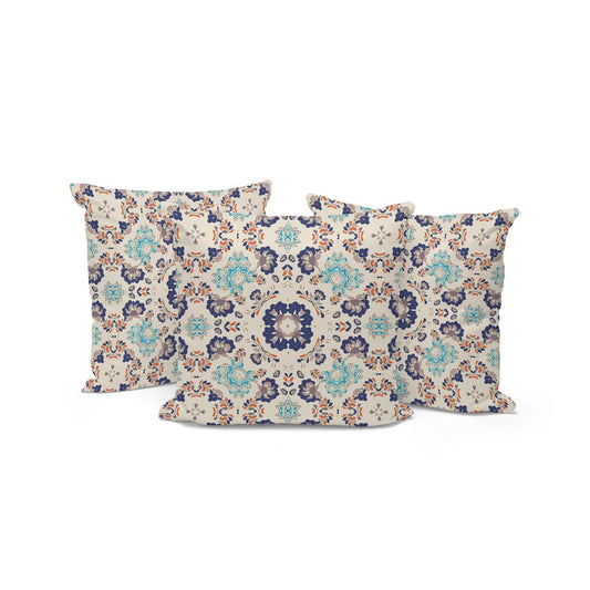 Set of Three 16" X 16" Blue and Orange Blown Seam Floral Indoor Outdoor Throw Pillow