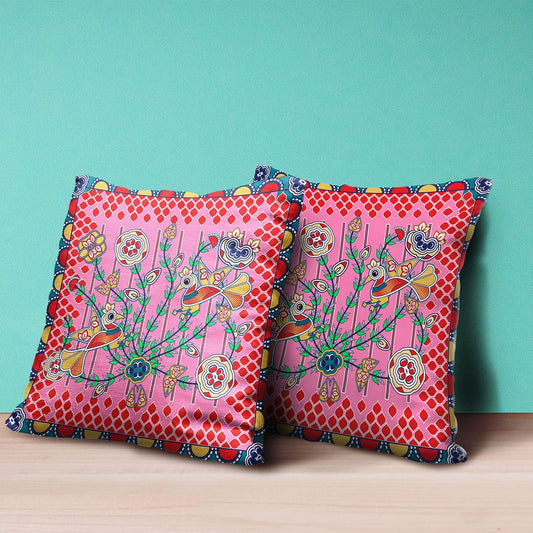 16" x 16" Pink Peacock Blown Seam Floral Indoor Outdoor Throw Pillow