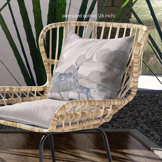 16x16 Gray Green Deer Blown Seam Broadcloth Animal Print Throw Pillow
