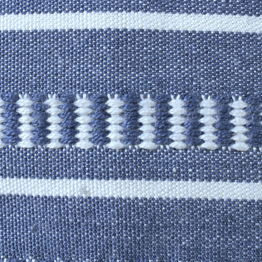 24" Blue and Off White Striped Indoor Outdoor Throw Pillow With Fringe