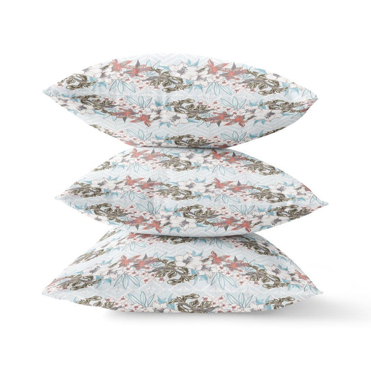 16" X 16" Light Blue Blown Seam Floral Indoor Outdoor Throw Pillow