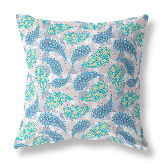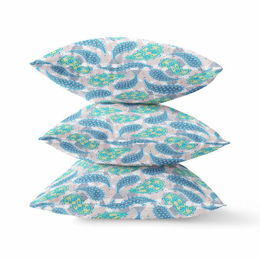 16” Green Indigo Boho Paisley Indoor Outdoor Throw Pillow