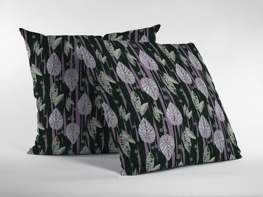 16” Lavender Black Fall Leaves Indoor Outdoor Throw Pillow