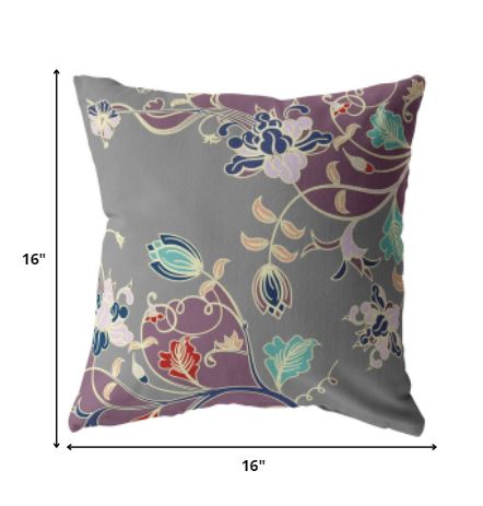 16" Purple Gray Garden Indoor Outdoor Throw Pillow