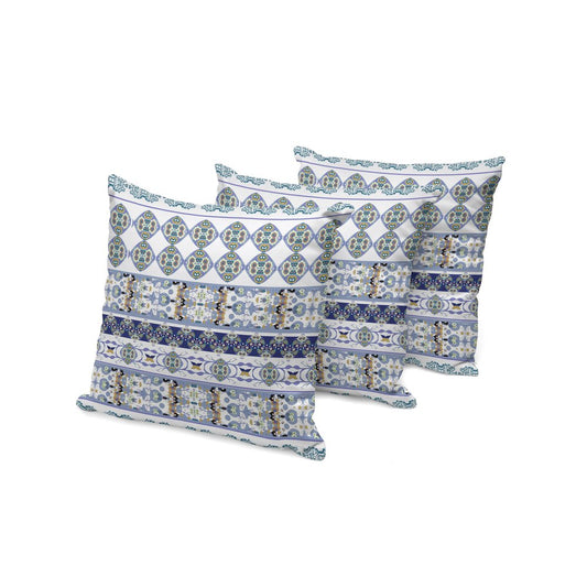 Set of Three 16" Blue and Off White Botanical Indoor Outdoor Throw Pillow Cover and Insert