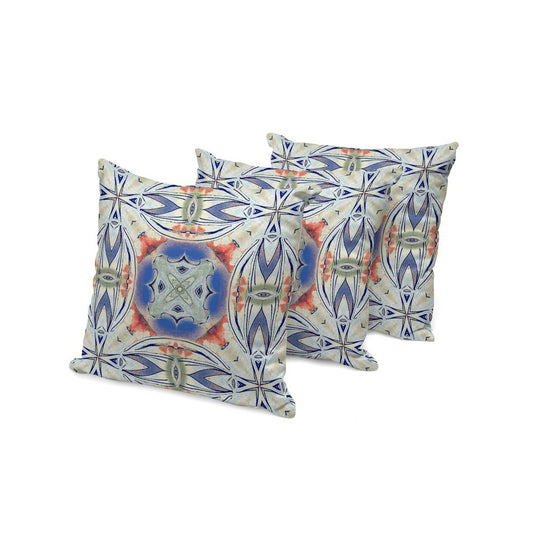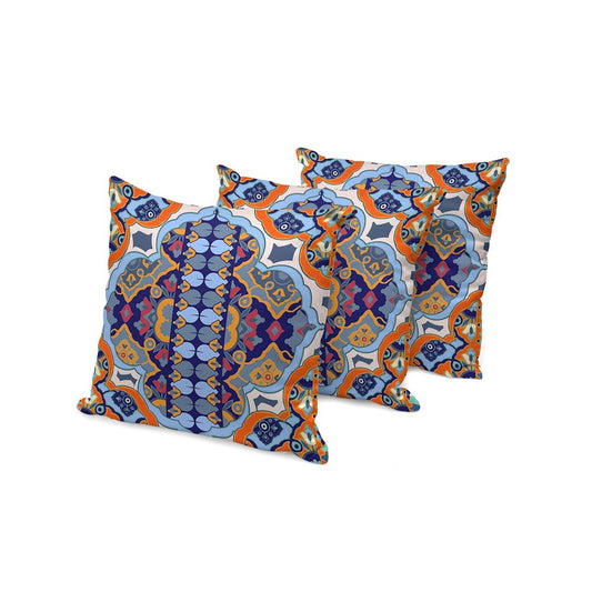 Set of Three 16" X 16" Blue and Orange Blown Seam Floral Indoor Outdoor Throw Pillow