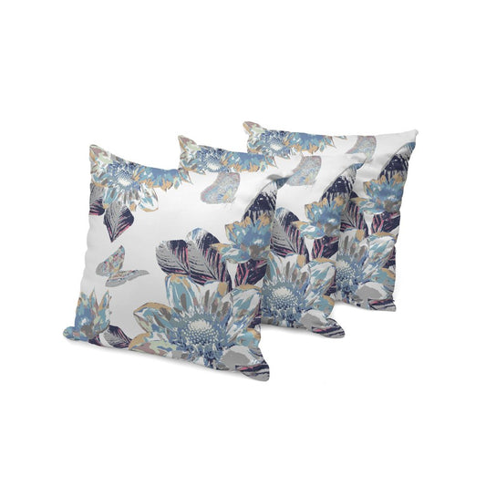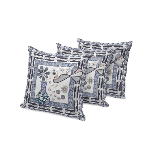 Set of Three 16" X 16" Blue and White Butterfly Blown Seam Animal Print Indoor Outdoor Throw Pillow