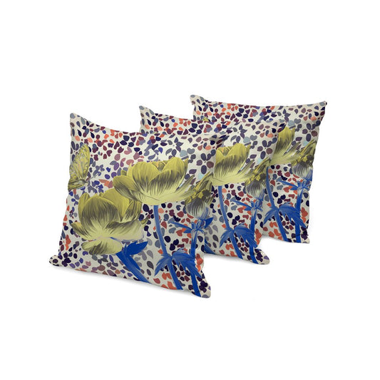 Set of Three 16" X 16" Blue and Yellow Butterfly Blown Seam Floral Indoor Outdoor Throw Pillow