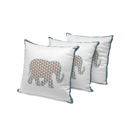 Set of Three 16" X 16" Blue and White Elephant Blown Seam Animal Print Indoor Outdoor Throw Pillow