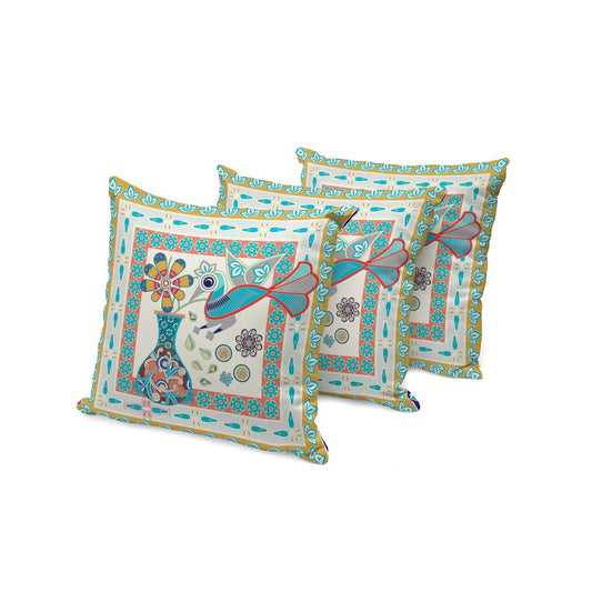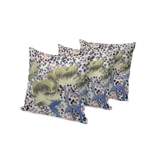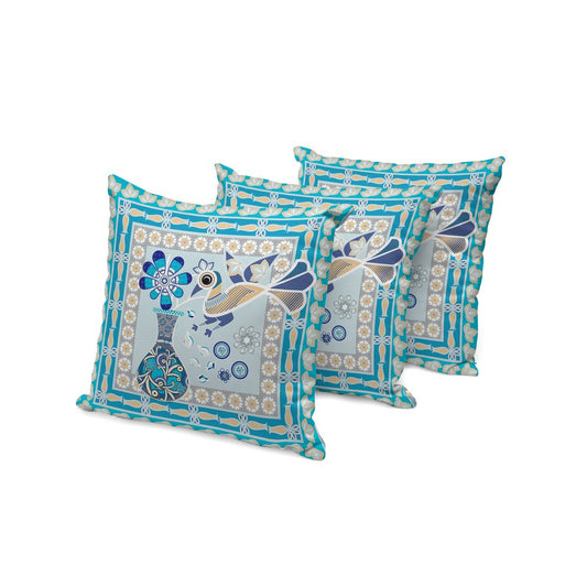 Set of Three 16" X 16" Blue and Green Butterfly Blown Seam Floral Indoor Outdoor Throw Pillow
