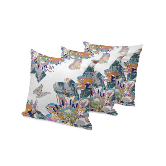 Set of Three 16" X 16" Pink and White Butterfly Blown Seam Floral Indoor Outdoor Throw Pillow