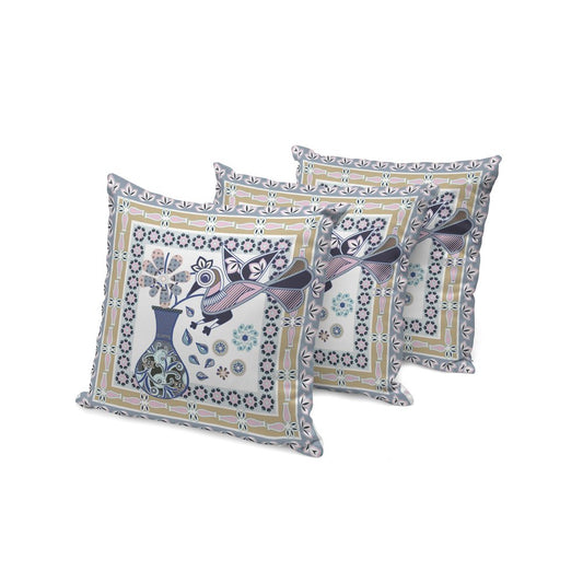 Set of Three 16" X 16" Beige and White Peacock Blown Seam Floral Indoor Outdoor Throw Pillow