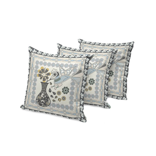 Set of Three 16" X 16" Gray and White Butterfly Blown Seam Floral Indoor Outdoor Throw Pillow