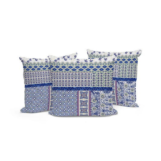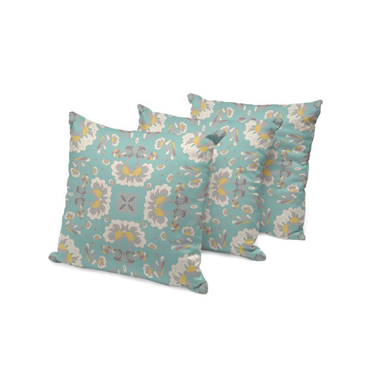Set of Three 16" X 16" Blue and Green Abstract Indoor Outdoor Throw